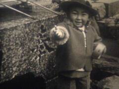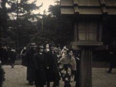 伊勢神宮、多度神社への初詣。現在の霞ヶ浦球場で競馬観戦。撮影者は31歳。2歳になる長男のたどたどしい足取り。多度神社の参拝後、駅までの沿道の店で、きなこがまぶされた多度豆を買ってもらうのが楽しみ。正月の町は初売出しの風景。日本最短の路線「桑名電軌」が走る。空襲で焼けた、今はなき旭劇場の姿も。