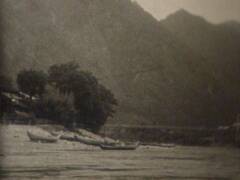 大平峠に旅行桑名に住む撮影者(提供者の伯父)は31歳。家族は写っていない。伊那の絶景の遊覧。提供者曰く、「伯父が友人と行ったのだろう。彼にとっては心入れの撮影だったと想像する。私(提供者)は舟に弱いので、せめて川岸からでも眺めたいと思った。よい作品が残ってよかった」。天竜川の川下り。