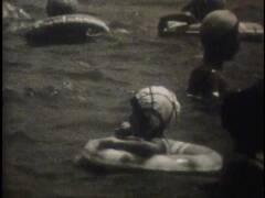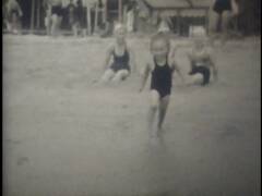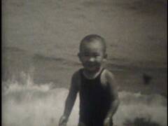 海水浴を楽しむ一家。遠くには小さな船。撮影者(32歳)の長男(清吉)は海水にまだ馴れず、水打ち際で遊んでいる。数年後、撮影者の姪である提供者も海水浴に連れて行かれた。撮影者(伯父)に抱きかかえられ、深みに投げ込まれた。「夢中であえぎ、砂浜に上った。少し厳しい訓練に思えたが、この様な訓練が上達につながるのだろう」。
