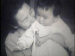 提供者が前年に出産した長女を連れて、実家の桑名へ初めて帰省する様子。特急つばめで名古屋まで行き、関西線に乗り換えて桑名の実家へ。翌日は夫(撮影者)とロープウェイ(当時は東洋一の高さ)で御在所岳へ。その後、提供者の伯父の材木店へ。材木置場、貯木場などを写す。遠景に揖斐川。大勢に見送られながら一路東京へ。