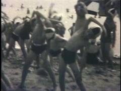 撮影者41歳。長女の通う小学校の夏休みの臨海学校に、PTA役員として同行した時の記録。甲州街道からバスに乗って港へ。撮影者は長女のクラスメイトを家に呼んで、みんなで観るのが楽しみだった。当時はTシャツやトレーナーなどはなく、母親の手作りだったという。1クラス50人、6クラス。団塊の世代。