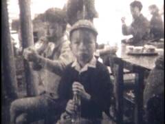 茶屋でラムネを飲むこどもたち、お茶を飲み談笑する大人たち