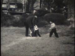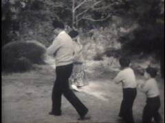 瀟洒な邸宅と大きな庭。親子で遊ぶ姿。タイヤ遊びのシーンではスローモーション撮影にするなど、コミカルな演出も。正月に集まる親戚。庭の木にくくりつけた大きなブランコが子どもに大人気。この邸宅は2015年に取り壊され、現存しない。
