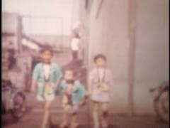 家族でのキャンプ(釣り、料理など)。場面は変わり、自宅の庭にて、たらいとじょうろで水遊び。夜の花火。場面は変わり、お正月。着物姿の子どもと初詣(野沢稲荷神社か)。背後に原水爆禁止の看板。中野新橋の芸妓の新年。野沢稲荷神社の祭礼、お神輿、デコレーションされた車。二子玉川園など。