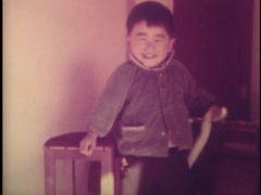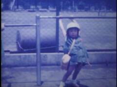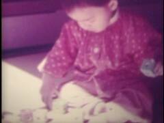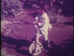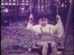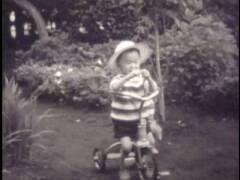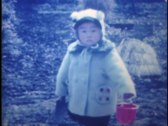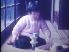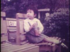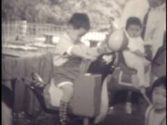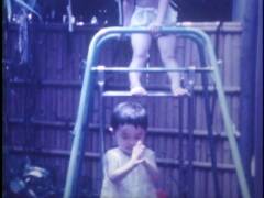 子どもの成長記録。撮影者は35歳(昭和4年生まれ)。提供者曰く、「この家はもうない、柿の木が1本残っているだけ。私が中学生になる頃、井戸水から水道に変わった。すごく抵抗があった。近所の家にはだいたい井戸があった。井戸端に洗濯機があった(ローラー2個)、脱水機は手動」。