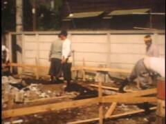 大阪万博の様子。ドイツ館、ソビエト連邦館などを写す。神前式の結婚式、披露宴では手を打ちながら歌う様子、御茶ノ水の三楽病院で出産、お宮参り。自宅の解体作業。解体業者、大工が作業する姿。解体後の自宅の建設の様子。完成した新居。