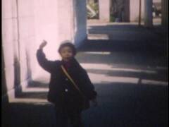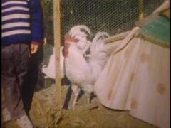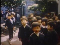 自宅の庭で飼うニワトリ。撮影者に向かって手を振り続けながら、通学路を走る子ども。幼稚園の卒業式。教会の室内。幼稚園の校長は、かつての海軍経理学校の要職に就いていた。